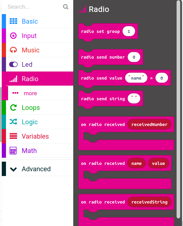 Dacă transmitem date către un micro:bit care are o versiune hardware diferită față de micro:bitul care trimite, acesta va selecta un grup implicit aleatoriu care nu este același cu celălalt micro:bit. Pentru a fi siguri că programul va trimite sau primi date folosind același grup radio, va trebui mai întâi să alegem și să setăm un grup radio.