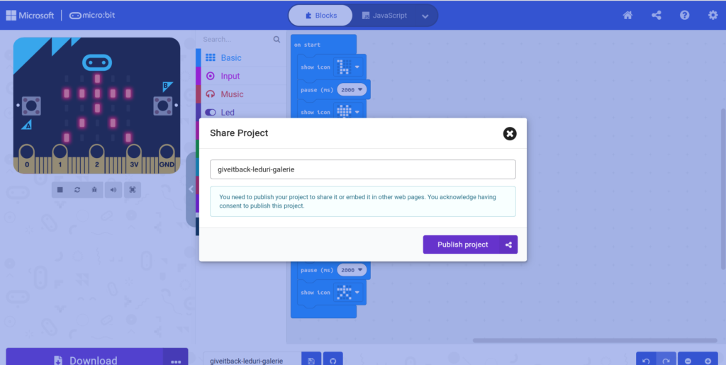 După apăsarea butonului Publish project, acesta va fi disponibil public.