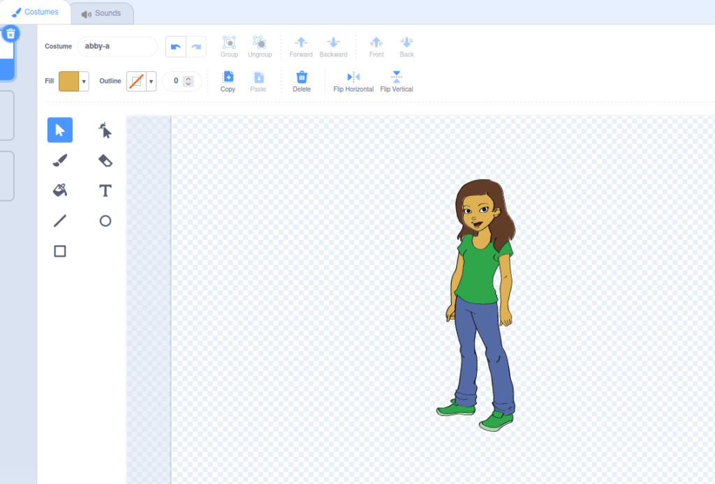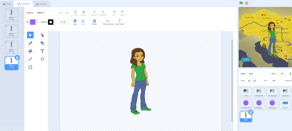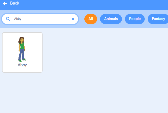 Vom folosi din nou biblioteca de personaje integrată în Scratch și vom selecta personajul Abby.