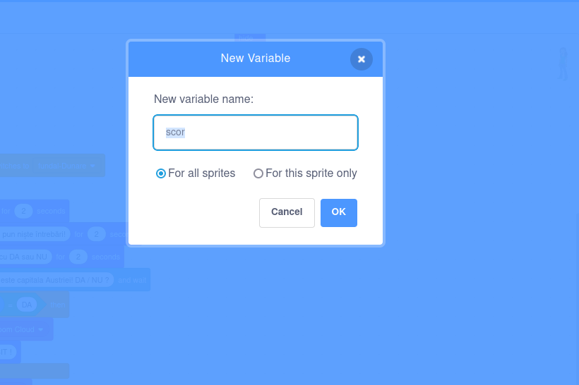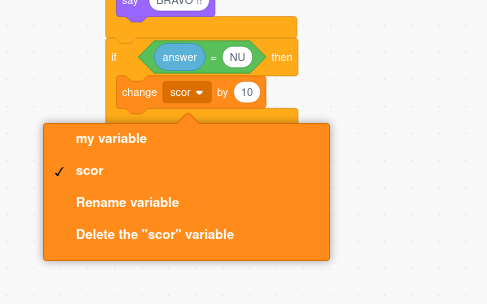 Pentru a înregistra scorul vom crea propria variabilă cu ajutorul aplicației SCRATCH.